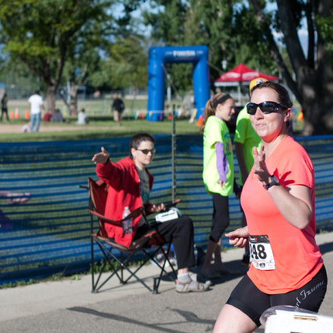 Originally, I was looking at the Boulder IronMan Sprint Trathlon. But after I started my training, I just was not feeling confident in swimming 750 meters in open water. I didn't want to quit though, so instead I did some research and found the 33rd Annual Longmont Triathlon on June 2nd. Instead of an open water swim, we would be in a pool, and it would only be 525 yards. This seemed much more manageable, and on the morning of the event, I found that I was not the only one nervous about the first leg! I was lucky enough to start in the second wave of participants, so I was able to watch the first wave slowly make their way through the laps. It helped give me a little confidence, and I would say that it was a big success for me. I finished in 1:39:33, which was better than my goal of 1:45:00!